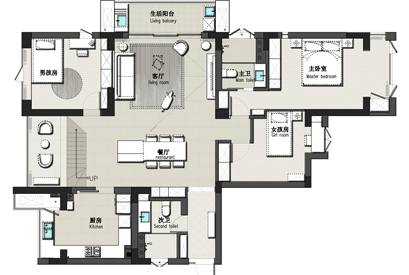 區域:泉水 小區:龍畔金泉 戶型:3室2廳2衛 面積:206m2 風格:現代 設計:王源聰
