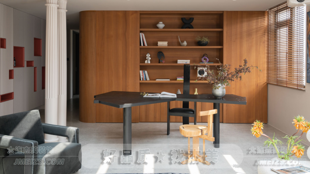 這種光影效果不僅增加了空間的視覺深度,還為書房增添了一份寧?kù)o和舒適。