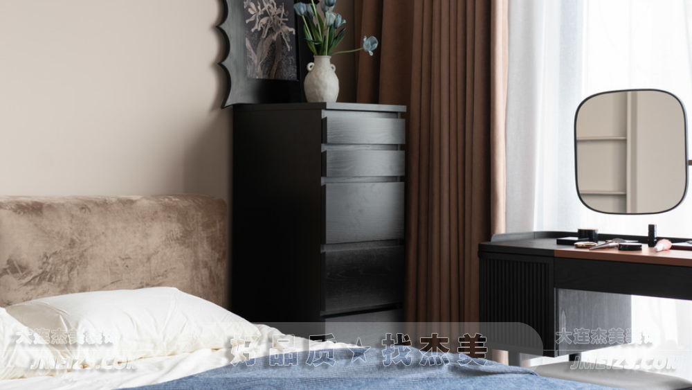 與公共區(qū)域的夸張和個(gè)性化設(shè)計(jì)不同,臥室更多地體現(xiàn)了女主人喜歡的沉穩(wěn)和內(nèi)斂。這種風(fēng)格轉(zhuǎn)換不僅豐富了整體空間的層次感,也讓臥室成為一個(gè)真正適合休息和放松的私密空間。臥室的設(shè)計(jì)也注重細(xì)節(jié)和品質(zhì),無(wú)論是材料的選擇還是家具的布局,都體現(xiàn)了設(shè)計(jì)師對(duì)品質(zhì)生活的追求。