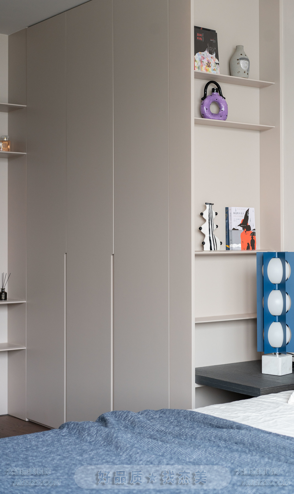 左右兩側(cè)則做了大扇的移門,用于收納不常使用的物品和不常翻看的書籍。這種設(shè)計(jì)不僅美觀,還具有很高的實(shí)用性。
