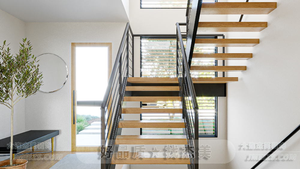 杰美裝飾大連裝修公司將極簡主義風格設計語言與樓梯功能完美統一的案例,簡約、功能性和美觀并重,給人啟發和設計靈感。