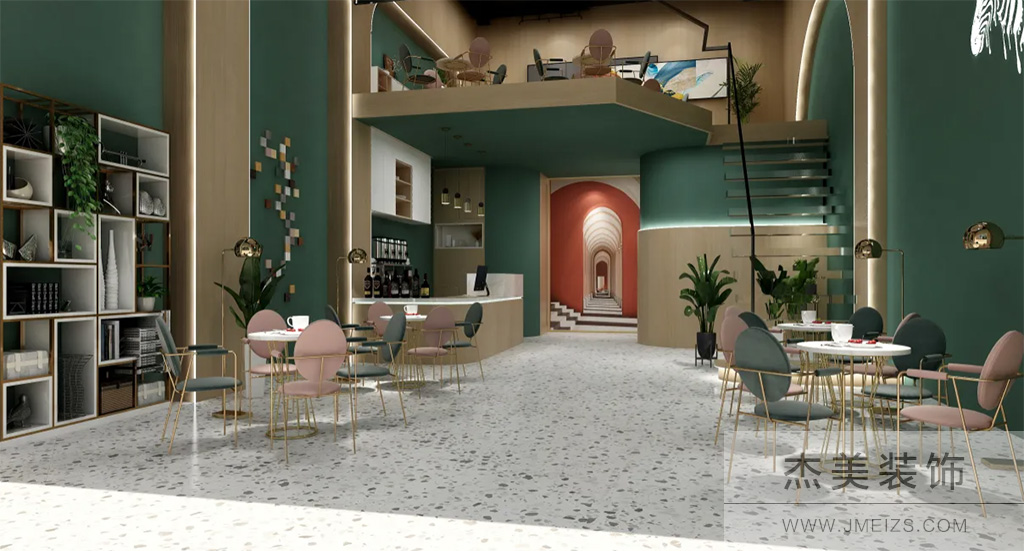 設計說明:此方案為北歐風格,主體采用北歐風的色系搭配,同時融入輕奢風格的代表元素,搭配原木柜體及墻面裝飾。增加空間的靈動感。通過飽和度較高的墨綠色乳膠漆和原木風格元素以及北歐配色的家具的對比,使得視覺沖擊感較強,對客戶的新引力增大,空間雖采用了較暗的顏色進行配色,但卻不失整體清新的感覺。樓梯踏步采用玻璃材質,在吸引客戶好奇心的同時,為空間整體效果增添了新鮮元素。較高的舉架,進行局部的二層搭建,流出部分區域作為挑空,增添餐位的同時,也不失整個空間的開闊。